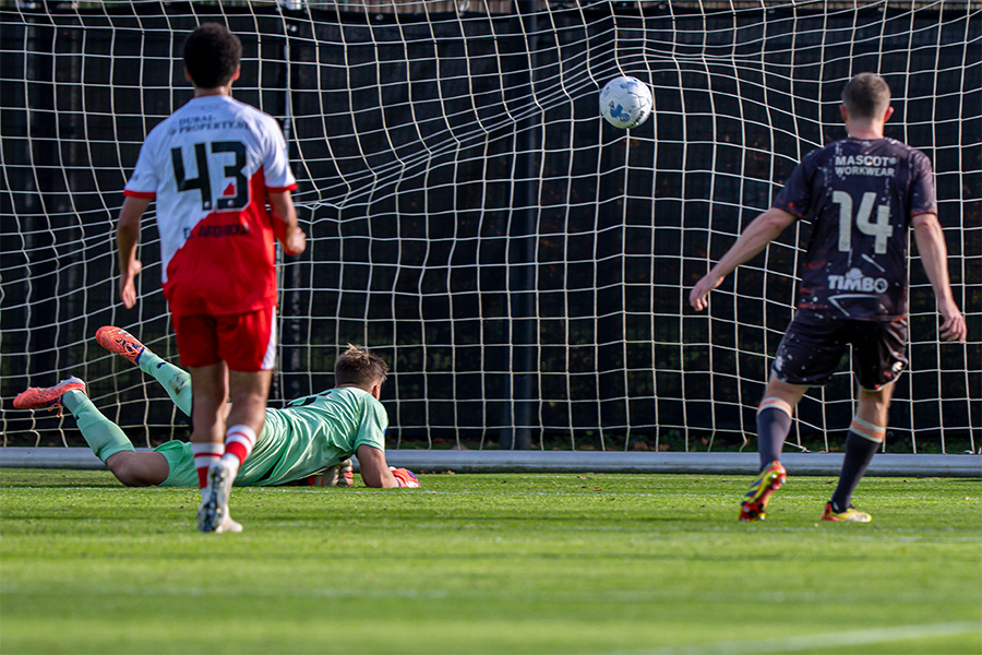 De tweede treffer liet niet lang op zich wachten. Vijf minuten na de openingsgoal was het Can Bozdogan die van afstand raak schoot: 2 - 0. Daarna nam de ploeg van Rick Kruys het initiatief meer over in Utrecht. Er kwamen mogelijkheden voor Ideho, Aurelio Oehlers, Luca Blondeau en Yannick Leliendal. Uiteindelijk was het Oehlers die tien minuten voor tijd de aansluitingstreffer produceerde. Een schot van Key-Shawn Wong-A-Soij werd nog gered, maar in de nastoot legde Jesper Tielemans goed breed op Oehlers, die eenvoudig raak kon prikken.